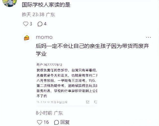 马筱梅在直播间解释过,是孩子放秋假带出来玩,但根据网上曝光的一张学校安排,这几天并不是什么放假日,反而马上就要迎来考试周。 也有台湾IP的网友现身佐证,这就让网友们觉得更奇怪了,质疑她何必要在这种事上撒谎?